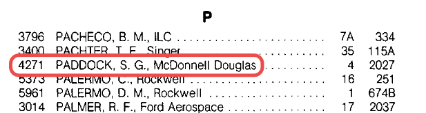 The truth is that the Stephen Paddock mentioned in the NASA documents and the accompanying "Bowlers knock 'em down" newspaper is actually a Stephen Gorham Paddock Jr. Gorham led a 40 year aerospace engineering career and passed away in 2013. [1]